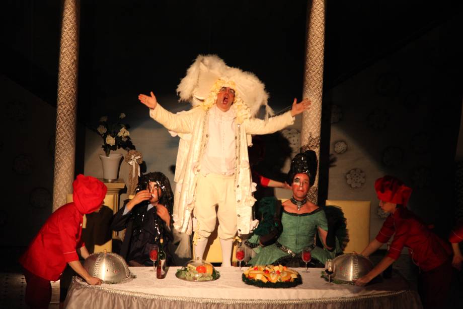 Grupo que leva o humor a sério há mais de vinte anos, o Parlapatões só agora monta seu primeiro espetáculo do dramaturgo francês Molière, O Burguês Fidalgo. Na comédia musical, Sr. Jordain (papel de Hugo Possolo, também diretor e cenógrafo da montagem) é um homem que enriqueceu e não possui títulos de nobreza ou bons modos. Ele contrata professores de filosofia, de esgrima e de música para deixá-lo mais refinado. Mas as pessoas só querem tirar proveito de sua fortuna e de sua ingenuidade. A única que percebe isso é sua mulher, Sra. Jordain (interpretada pelo sempre impagável Raul Barretto). Há ainda o fato de a filha do casal ter se apaixonado por um pobretão. Como é comum nas comédias de Molière, uma grande e mirabolante farsa resolve a trama. Farra talvez seja a melhor defnição para o que o elenco faz no palco. Eles se divertem com as insanidades que propõem em cena e toda a plateia entra no clima. Se o pano de fundo da história critica a emergente riqueza do Brasil, os figurinos, os cenários e os toscos acessórios estão ali justamente para revelar a falta de brilho que há na opulência sem inteligência. A narrativa se passa no século XVII, mas o grupo renova o texto ainda mais com momentos de improvisação. Com Fabek Capreri, Alexandre Bamba, Lívia Camargo, Fernando Fecchio e outros. Estreou em 3/8/2013. Dias 13, 20 e 27/10/2015.