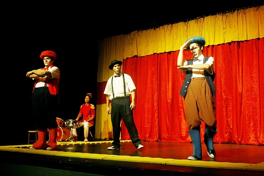 Uma trupe de palhaços faz do tablado um picadeiro e revive números clássicos inspirados em ícones como Carequinha, Arrelia e Torresmo, que fizeram muito sucesso em circos brasileiros. Amparados pela percussionista Maestrina Polaca (Fernanda Zaborowsky), os abilolados Batata (Vinicius Calamari), Espigão (João Inocencio) e Pinhão (Fabio Neppo) criam brincadeiras ingênuas e divertidas. A criançada participa bastante e contribui com boas gargalhadas. Recomendado a partir de 5 anos. Estreou em 5/3/2005.