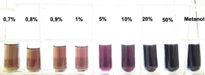 Mistura final na cor azul marinho – Metanol 50% a 100%