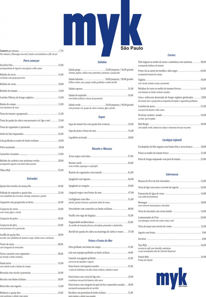 Confira o cardápio, com preços, do Myk, tema da minha crítica deste fim de semana na revista. + Leia a crítica