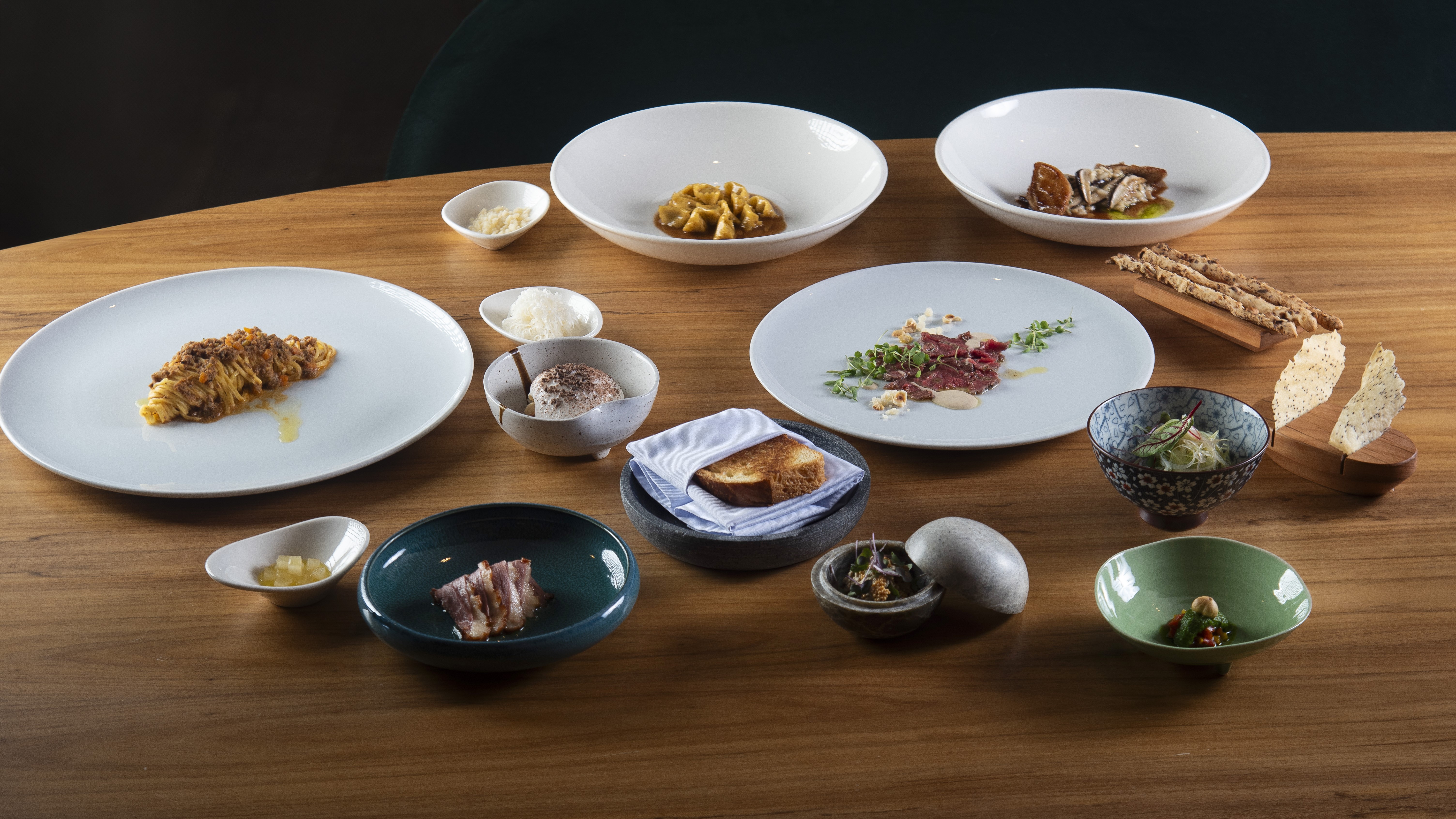 Nessa vitrine, ele expede apenas degustações: uma de massas (R$ 329,00, quatro etapas) e outras duas com pratos variados por R$ 429,00 (seis etapas) e R$ 520,00 (nove etapas) — o preço da harmonização, opcional, varia de R$ 240,00 a R$ 520,00.