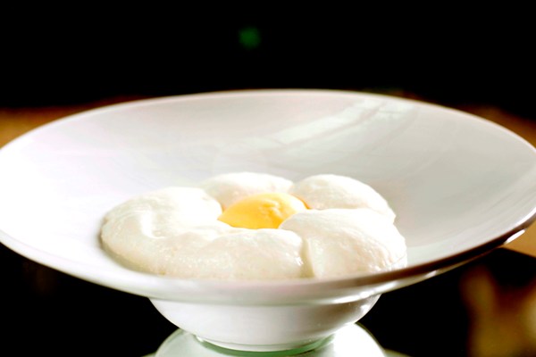 2. O ovo, que em vez de ser um ovo frito de verdade, é preparado com sorvete de gemada envolto em uma espuma branca de coco. A cada colherada vão surgindo lascas crocantes da fruta. É uma das melhores sobremesas do menu e sai a R$ 18,00.