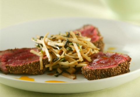 Receita da chef Tatiana Szeles Rendimento: 4 porções Ingredientes Filé mignon 1 colher (chá) de coentro em grãos 1 colher (chá) de mostarda em grãos 1 colher (chá) de kümmel (alcaravia) 1 colher (chá) de erva-doce em grãos 1 colher (café) de pimenta síria 4 pedaços de filé mignon de 220 g cada Sal 1 […]