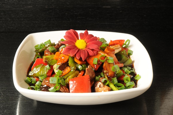 Prato que permanece no cardápio: mix de pimentões, cogumelo shiitake e cenoura ao molho de ostra com cubos de filé-mignon (Foto: Cida Souza)