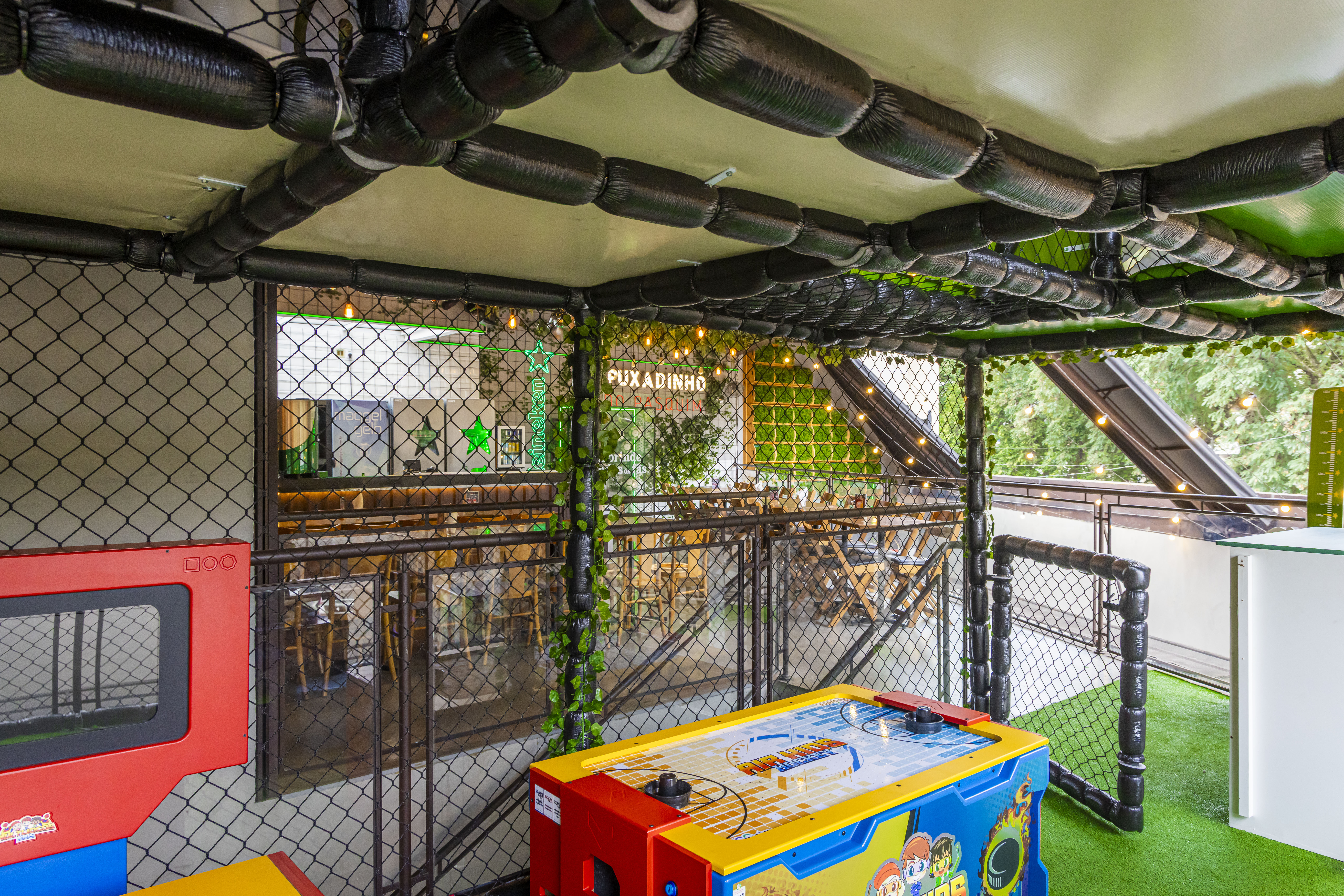 Com 40 metros quadrados, a área apresenta um brinquedão com escorregador, fliperamas e mesas de jogos. Monitores vão supervisar a garotada, que deve ter até 12 anos ou 1,60 metro de altura.