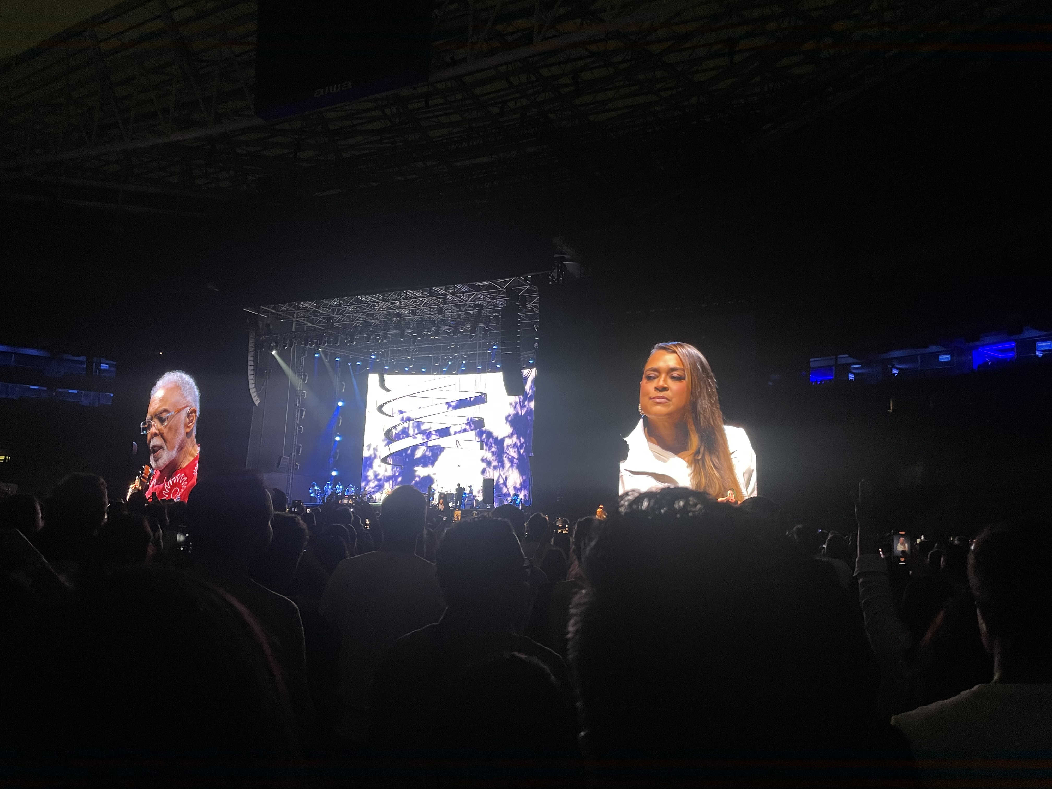 A cantora Preta Gil surpreendeu o público que lotou o Allianz Parque na noite deste sábado (26) . Ela se apresentou em um dueto com o pai Gilberto Gil em seu último show da turnê “Tempo Rei” em São Paulo.