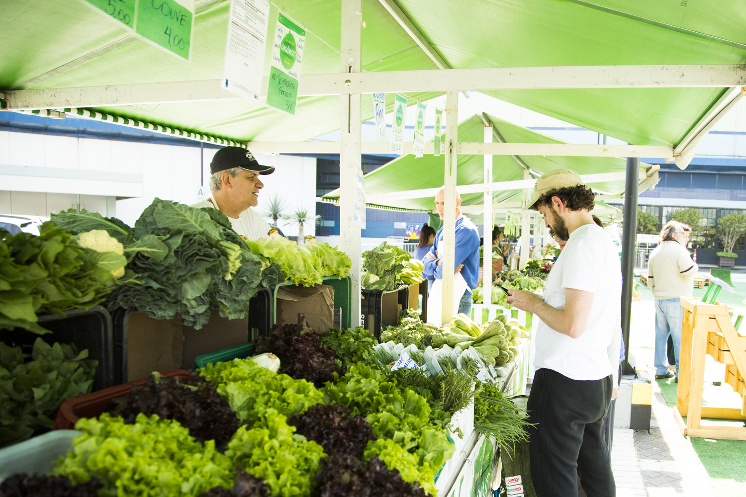 As barracas, que vendem hortaliças e verduras orgânicas, entre outros itens, como molhos de tomate, temperos e pães, estão reformadas e continuam a ser montadas no estacionamento do shopping.