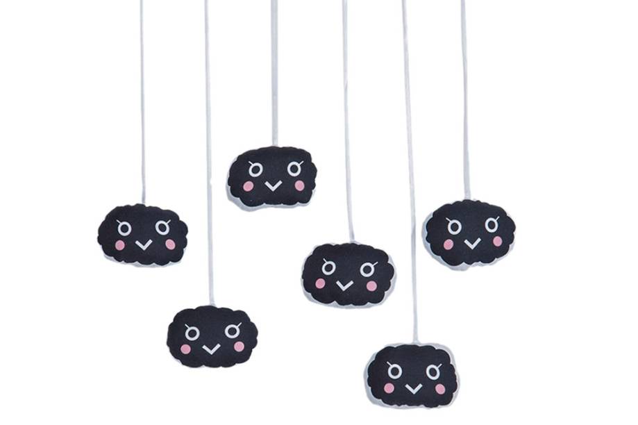 ■ Móbile no formato de nuvens com fitas de cetim: R$ 49,70. Mooui.