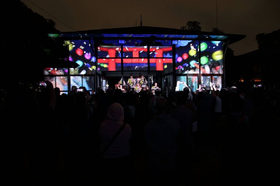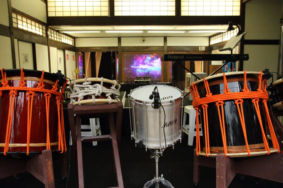 Apresentações de taiko com projeção mapeada: às 19h e às 20h