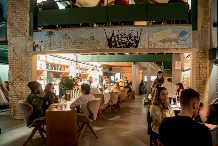 Com luminárias que emanam luz suave sobre o balcão em zigue-zague e pelas mesas, a casa é cada vez mais procurada por casais. Nas paredes, a decoração evoca a Revolução dos Cravos (1974), de Portugal, e o cardápio também guarda referências lusas, ainda que não se prenda a elas. O chef Paulo Maia, que já passou por La Casserole e Cora, está à vontade na cozinha desde a abertura do bar, quando o cardápio era do também talentoso Guto Cavanha. Das boquetas, expede tentáculos de polvo bem tostados na frigideira com páprica guarnecidos de batata ao murro e aïoli (R$ 98,00). Na seleção de aperitivos, o coração de pato ao molho da carne, acelga bok choy grelhada e dadinhos de polenta frita (R$ 65,00) fazem um bom jogo de textura e sabores. Não deixe passar o ótimo croquete de joelho de porco carnudo e cascudinho ao molho ardido piri-piri (R$ 45,00, cinco unidades). A bartender Nathalia Sanches sugere drinques como o fado tropical (R$ 42,00), levinho, de vodca, cordial de abacaxi e cardamomo, vermute seco e vinho branco português, tudo gaseificado.