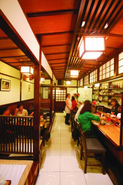 Foi neste pequeno boteco, que passou a ser administrado em 2011 por Margarida Haraguchi, que muitos paulistanos aprenderam o conceito de “izakaya”, o barzinho japonês. O balcão, atrás do qual a equipe de cozinha trabalha sem parar, congrega amantes desse tipo de culinária, sentados quase que tocando ombro a ombro — grupos maiores podem reservar espaços com tatame. Para acompanhar o saquê, pedir a porção de petiscos do dia (R$ 48,00) é sempre uma surpresa, com delicinhas como nabo desidratado e berinjela frita. O takoyaki ou bolinho de polvo (R$ 48,00, dez unidades), preparado na hora em forminhas redondas de metal pelando, surge com raspas de peixe seco, molho da casa e alga em pó.