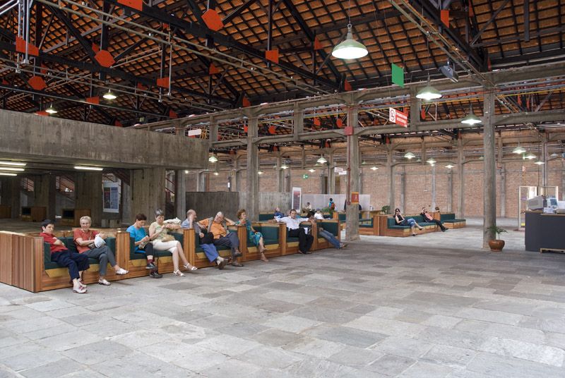 O projeto arquitetônico de Lina Bo Bardi mantém a estrutura original da antiga fábrica de tambores da década de 1930. A primeira parte da unidade foi inaugurada em 1982 e, em 1986, abriu para o público o bloco esportivo. Lá dentro, o centro de cultura e lazer tem na programação cerca de 120 atrações musicais ou teatrais por mês. Há ainda quadras esportivas, piscina, espaços de exposições, restaurante e choperia, que fazem jus à frequência intensa, de 1,25 milhão de pessoas a cada ano. O teatro, de estrutura fora do convencional, tem duas frentes de plateia, com o palco entre elas. As poltronas, de madeira, sem estofado, remetem aos antigos teatros greco-romanos, que tinham assentos de pedra.