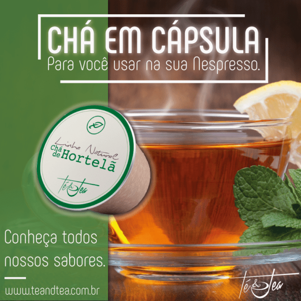 Loja de chás na internet com destaque para os chás expressos em cápsulas compatíveis com máquinas Nespresso.