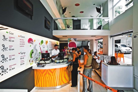 Estão sempre em cartaz o sorvete natural e de mirtilo. Para acrescentar caldas e confeitos, paga-se por item. Na loja do Itaim, sirva-se você mesmo e pague por quilo.