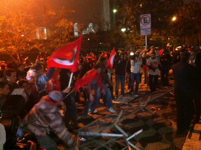 Já na Assembleia Legislativa, que fica em frente ao Parque do Ibirapuera, homens do Choque usaram bombas de efeito moral para evitar a invasão do local por aproximadamente cinquenta pessoas.