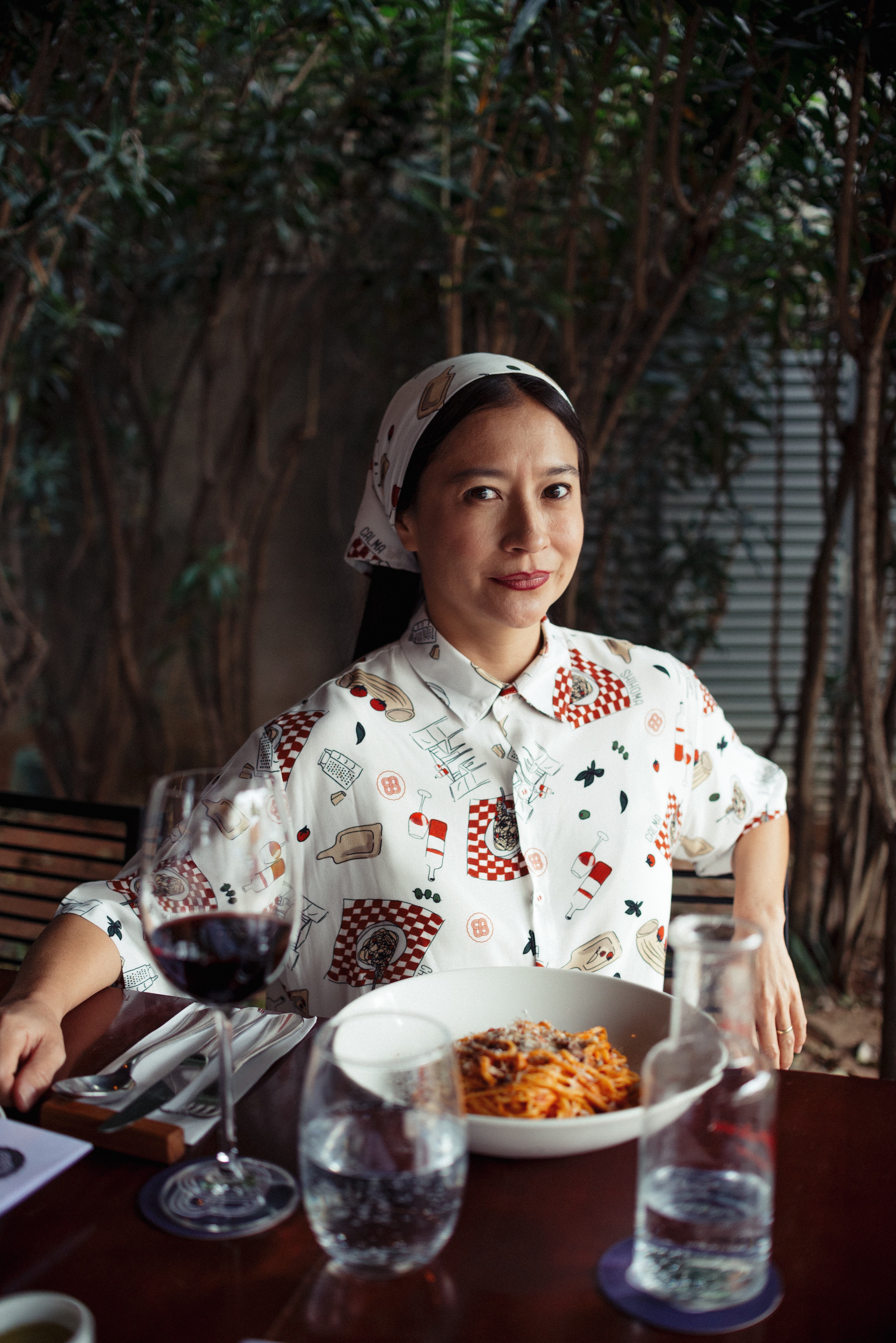 Com camisa, calça e boné, collab celebra quatro anos da casa de massas da Vila Madalena